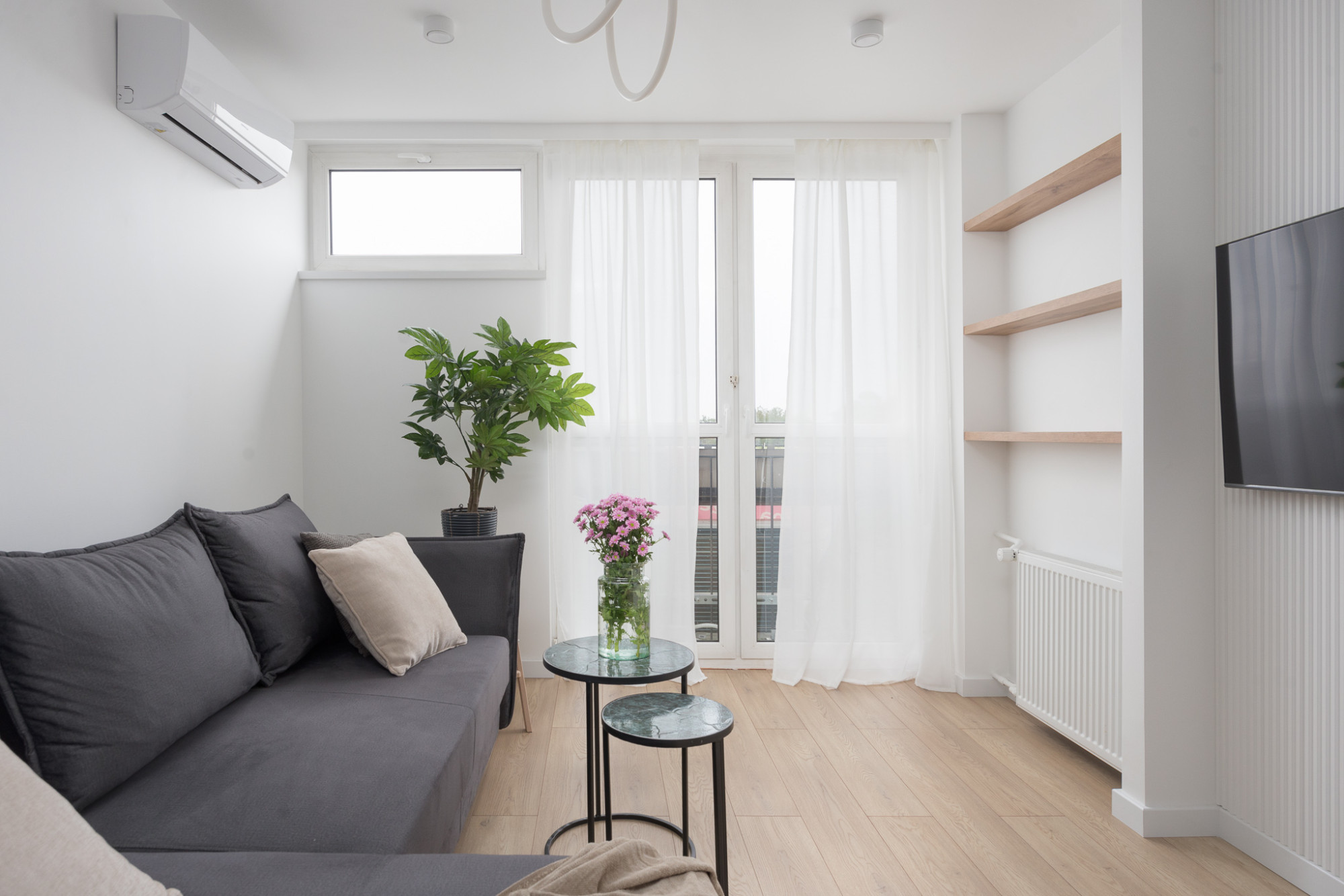 Mieszkanie zostało również wyposażone w klimatyzację.